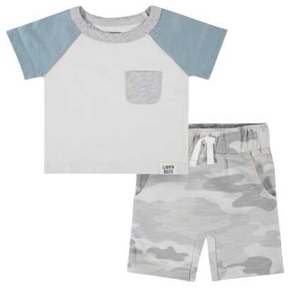 2-Piece Baby Boys Blue Camo Top & Shorts Set