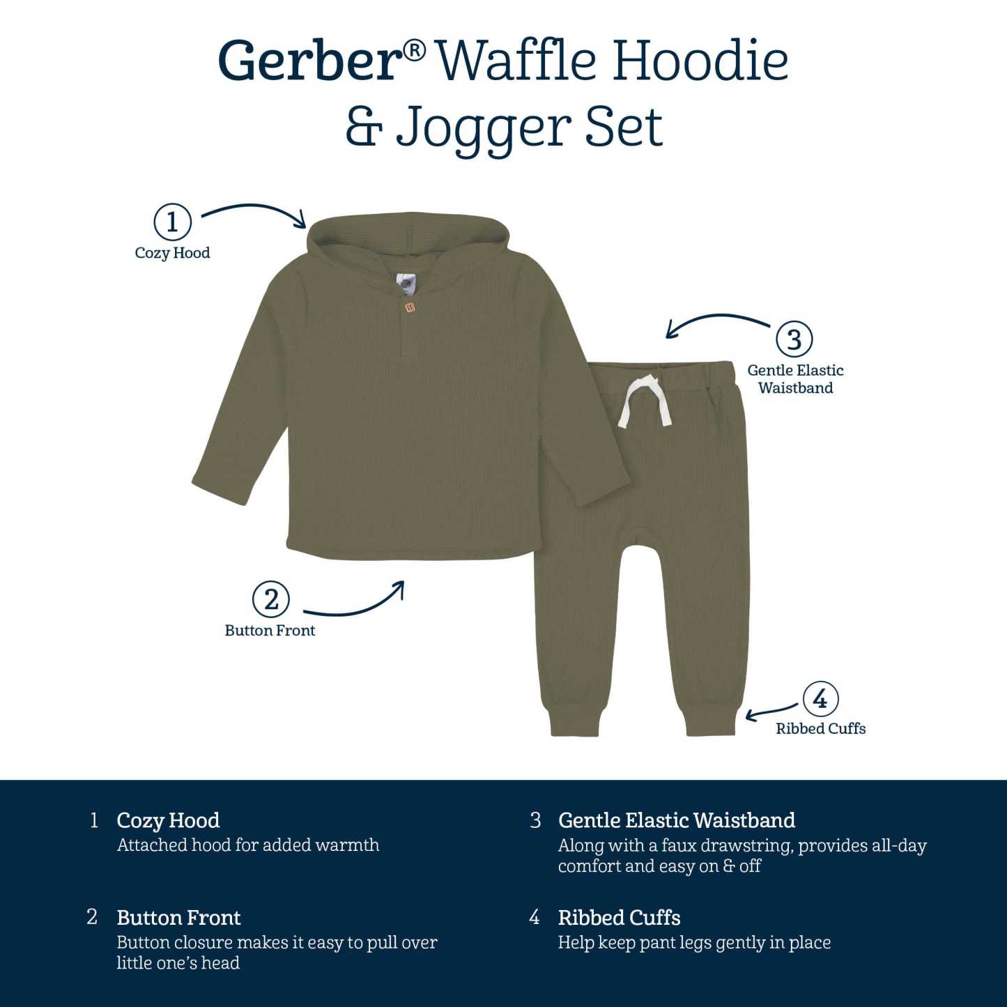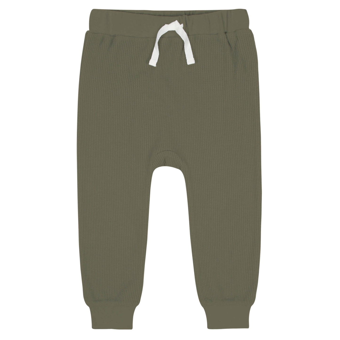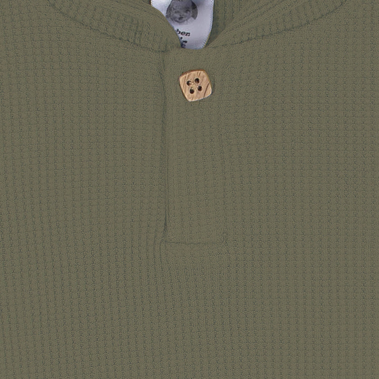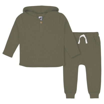Our 2-piece long sleeve waffle hooded top and jogger is perfect for those cool fall days! This sage green set is designed for easy dressing and all-day comfort, perfect for infants and toddlers. We use STANDARD 100 by OEKO-TEX® certification on products tested in an independent laboratory against a list of more than 400 harmful substances, including PFAS. Pair with our tees or other solid essentials for an extra layer of warmth!