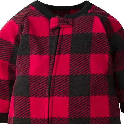Our black and red buffalo plaid microfleece blanket sleepers are perfect for when you’ve got the AC on high or it’s chilly outside. Made with polyester microfleece, they’re soft and flame resistant for safety. Each toddler blanket sleeper features a zipper down the front to keep middle-of-the-night changes quick and simple. Plus, the baby sizes all have safety tabs at the top of the zipper to prevent their sweet faces from being poked and irritated (safety tab not included in toddler sizes). These snuggly baby and toddler sleepers are designed with fun prints and colors to add a little excitement to sleepy time. Each blanket sleeper is machine washable and dryable.