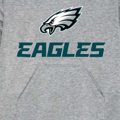 Even the smallest family members can get in the football spirit with our officially licensed Philadelphia Eagles Hoodie. This hoodie is made to keep your little one comfortable throughout the entirety of the game or while playing with friends. Featuring an applique team name and logo front and center, cuffed sleeves and banded bottom, this is the perfect hoodie for infants and toddlers, as it may be worn comfortably all on its own or layered with a shirt for extra warmth. The hoodie also has a functional front pocket to keep those hands warm when it's a little chilly outside. This NFL by Gerber Eagles team hoodie is machine washable to take care of any game-time spills with the utmost ease and convenience.