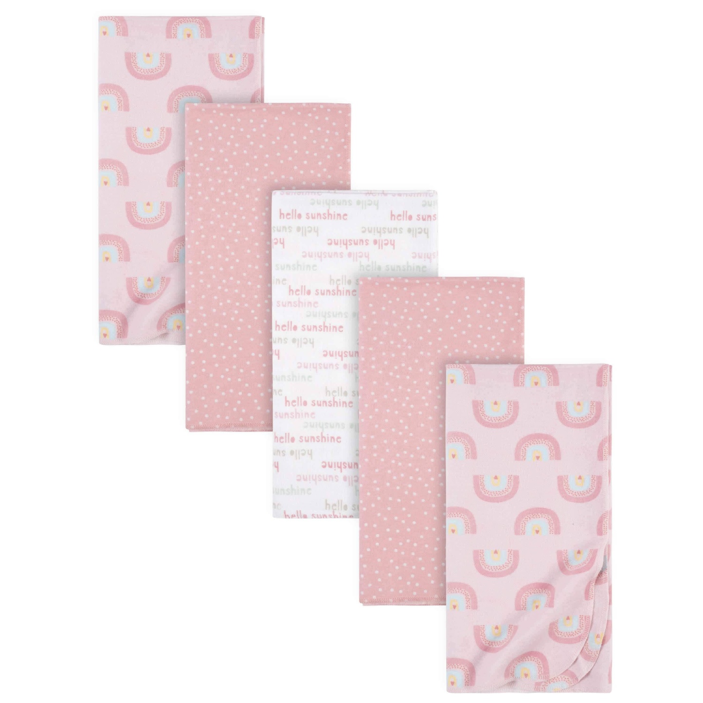 5-Pack Baby Girls Pink Rainbow Flannel Receiving Blankets