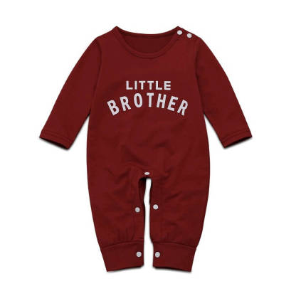 This long sleeve jumpsuit is a stylish and comfortable addition to your little one's wardrobe. The "Little Brother" lettering creates a fun and playful message, while the solid color adds a touch of simplicity to the design. The long sleeves provide extra warmth and protection on cooler days, while the soft and comfortable fabric ensures all-day comfort. This jumpsuit is perfect for any occasion, from playtime to naptime, and its versatile design allows it to be paired with other pieces for a variety of stylish looks.