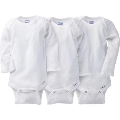 Your little one will be ready for whatever you have in store in these pure white Onesies庐 brand long sleeve bodysuits. Great for layering in the cooler months. The cotton rib makes for a comfortable fit, while smart design features like an expandable lap neckline and snap closure make changing fast and easy!